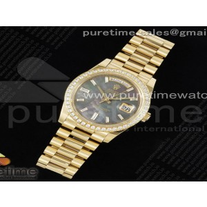 JD공장 롤렉스 데이데이트 그레이자개 다이아인덱스 다이아베젤 40 옐로우골드 _ Day Date 40 YG 904L Steel JDF 11 Best Edition Gray MOP Dial Diamonds Bezel on YG Bracelet A2836 > 롤렉스I데이데이트