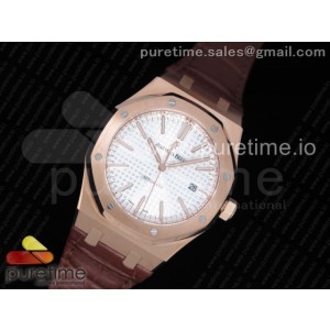 • JF공장 V5 오데마피게 로얄오크 15400 로골 화이트다이얼 가죽 _ Royal Oak 41mm 15400 RG JF 11 Best Edition White Textured Dial on Brown Leather Strap A3120 V5