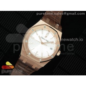 • OM공장 오데마피게 로얄오크 41MM 로골 화이트다이얼 브라운가죽 _ Royal Oak 41mm 15500 RG OMF 11 Best Edition White Textured Dial on Brown Leather Strap MIYOTA 9015
