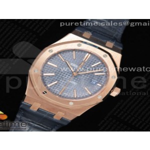 OM공장 오데마피게 로얄오크 15400 로즈골드 블루다이얼 가죽 _ Royal Oak 41mm 15400 RG OMF 11 Best Edition Blue Textured Dial on Blue Leather Strap A3120 > 오데마피게I로얄오크