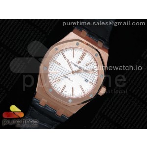 OM공장 오데마피게 로얄오크 15400 로즈골드 화이트다이얼 가죽 _ Royal Oak 41mm 15400 RG OMF 11 Best Edition White Textured Dial on Black Leather Strap A3120 > 오데마피게I로얄오크