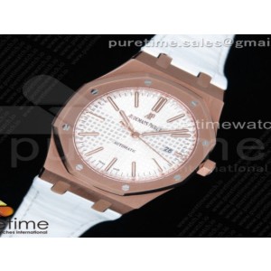 OM공장 오데마피게 로얄오크 15400 로즈골드 화이트다이얼 화이트가죽 _ Royal Oak 41mm 15400 RG OMF 11 Best Edition White Textured Dial on White Leather Strap A3120 > 오데마피게I로얄오크