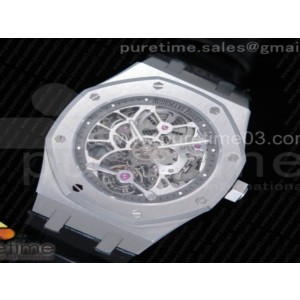 • 오데마피게 로얄오크 페이크뚜르비옹 스켈레톤다이얼 _ 가죽 Royal Oak Fake Tourbillon SS Skeleton Dial on Black Leather Strap A23J