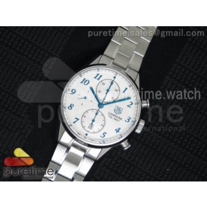 • V6공장 태그호이어 까레라 CAL1887 크로노그래프 화이트 다이얼 라이트블루 마커스 브레이슬릿 Carrera CAL1887 Chronograph SS V6F 1_1 Best Edition White Dial LightBlue Markers on SS Bracelet CAL1887