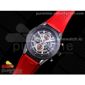 XF공장 태그호이어 칼리버호이어 PVD 스켈레톤다이얼 레드 러버 _ Calibre Heuer 01 Chrono SSPVD XF 11 Best Edition Skeleton Dial Red Hand on Red Rubber Strap A1887 > 태그호이어I칼리버