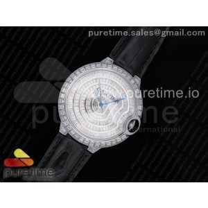 • 까르띠에 발롱블루 42MM 풀다이아몬드 _ 더블 사이드 악어가죽 Ballon Bleu 42mm SS Diamonds Bezel Diamonds Dial on Double Side Crocodile Strap MIYOTA 9015