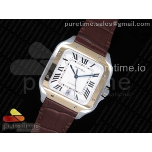 • V6공장 까르띠에 산토스 드 까르띠에 라지 2018 화이트다이얼 옐로우골드 베젤 브라운가죽 45mm _ Santos de Cartier 40mm 2018 V6F 11 Best Edition White Dial YG Bezel on Deep Brown Leather Strap MIYOTA 9015