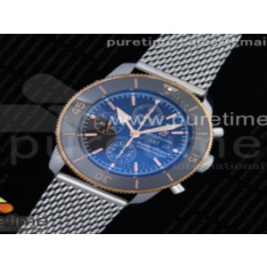 • 브라이틀링 슈퍼오션 44mm 크로노그래프 스틸 블랙콤비 매쉬 _ SuperOcean Heritage Chrono SS Black Dial RG Markers on SS Mesh Bracelet A7750