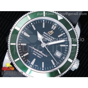 • OM공장 브라이틀링 슈퍼오션 헤르티지 2 42mm 그린베젤 블랙다이얼 _ 러버스트랩 + 스트랩 추가증정 SuperOcean Heritage ii B20 42mm SS OMF 11 Best Edition Green Bezel Black Dial on Black Rubber Strap A2824 (Free Extra Strap)