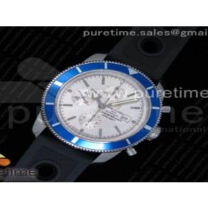 • OM공장 브라이틀링 슈퍼오션 헤르티지 2 46MM 화이트 다이얼 블랙 러버 스트랩 Superocean Heritage ii Chrono 46 SS OMF 1_1 Best Edition Blue Bezel White Dial on Black Rubber Strap A7750