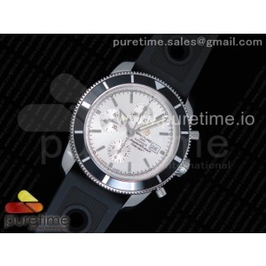 • OM공장 브라이틀링 슈퍼오션 헤르티지2 46MM 화이트 다이얼 블랙 러버 스트랩 Superocean Heritage ii Chrono 46 SS OMF 1_1 Best Edition Black Bezel White Dial on Black Rubber Strap A7750