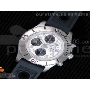 • 브라이틀링 슈퍼오션 스틸피쉬 크로노그래프 화이트다이얼 _ 블랙러버 스트랩 SuperOcean SteelFish Chronograph SS White Dial on Black Rubber Strap A7750