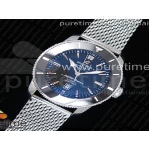 브라이틀링 슈퍼오션 헤르티지 2 46mm 블랙다이얼 세라믹베젤 _ 브슬 SuperOcean Heritage ii 46mm SS Black Dial Black Ceramic Bezel on SS Mesh Bracelet A2824 > 브라이틀링 I 에어로마린
