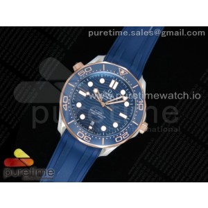 • OM공장 오메가 씨마스터 다이버 300 로즈골드 콤비 블루세라믹 러버 _ 2018 Seamaster Diver 300M SSRG OMF Best Edition Blue Ceramic Blue Dial on Blue Rubber Strap A8800 (Black Balance Wheel)
