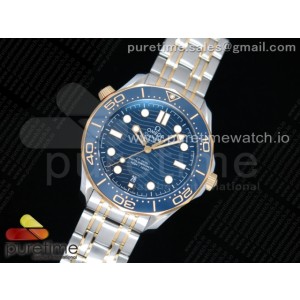 • OM공장 오메가 씨마스터 다이버 300 옐로우골드 콤비 블루세라믹 브슬 _ 2018 Seamaster Diver 300M SSYG OMF Best Edition Blue Ceramic Blue Dial on SSYG Bracelet A8800 (Black Balance Wheel)