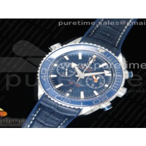 • OM공장 오메가 플래닛오션 블루다이얼 _ 가죽 Planet Ocean Master Chronometer OMF SS Blue LiquidMetal on Blue Leather Strap A9900 (Black Balance Wheel) V2