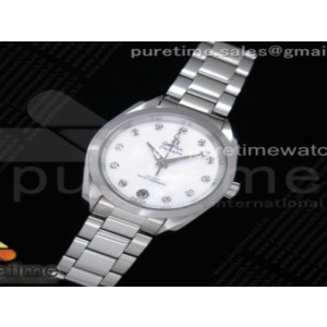 VS공장 오메가 아쿠아테라 34MM 자개다이아다이얼 브슬 _ Aqua Terra 150M 34mm Ladies SS VSF 11 Best Edition White MOP Dial Diamonds Markers on SS Bracelet A8800 > 오메가I아쿠아테라