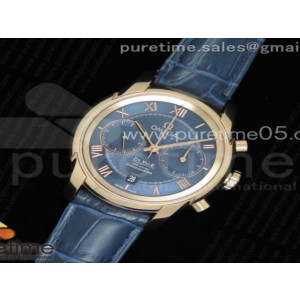 OM공장 오메가 드빌 크로노그래프 42MM 블루 다이얼 가죽 로즈 골드 De Ville Chronograph 42mm RG OMF 11 Best Edition Blue Dial on Blue Leather Strap A9301 (Black Balance Wheel) > 오메가I드빌