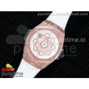 • HB공장 위블로 빅뱅 유니코 화이트골드 스켈레톤다이얼 화이트 거미스트랩 _ Big Bang Unico Sang Bleu RG HBF WhiteGold Skeleton Dial on White Gummy Strap HUB1213