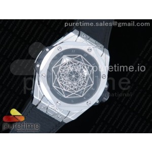 TM공장 위블로 빅뱅 유니코 스켈레톤 생실버 다이얼 블랙 스트랩 Big Bang Unico Sang Bleu SS TMF Skeleton Dial on Black Gummy Strap HUB1213 > 위블로 I 빅뱅