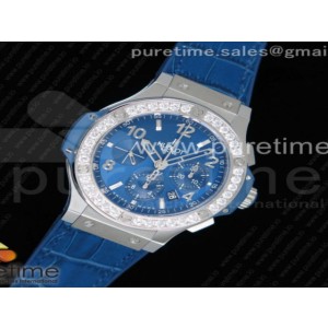 V6공장 위블로 빅뱅 크로노 44MM 스틸 블루 다이아베젤 거미스트랩 _ Big Bang 44mm SS V6F 11 Best Edition Blue Dial Diamonds Bezel on Blue Gummy Strap HUB4104 > 위블로 I 빅뱅