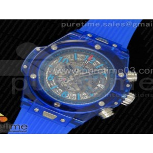• 빅뱅 유니코 블루 사파이어 스켈레톤 다이얼 블루 러버 스트랩Big Bang Unico Blue Sapphire Plastic Case Skeleton Dial on Blue Rubber Strap Jap Quartz
