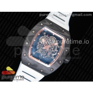 KV공장 V2 리차드밀 RM055 포지 카본 티타늄 스켈레톤 다이얼 골드 베젤 화이트 러버 스트랩 RM055 Forged Carbon Titanium Case KVF Best Edition Skeleton Dial Gold Inner Bezel on White Rubber Strap MIYOTA8215 V2 > 리차드밀