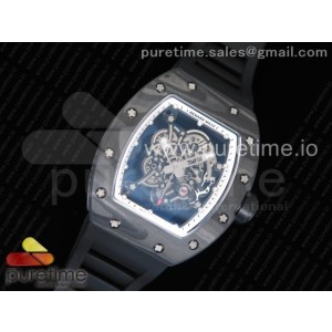 • KV공장 V2 리차드밀 RM055 포지 카본 티타늄 스켈레톤 다이얼 화이트 베젤 블랙 러버 스트랩 RM055 Forged Carbon Titanium Case KVF Best Edition Skeleton Dial White Inner Bezel on Black Rubber Strap MIYOTA8215 V2