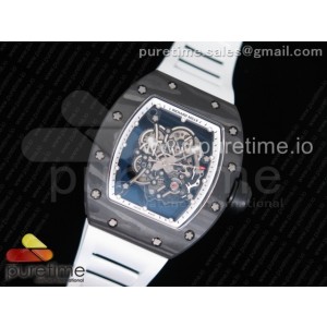 KV공장 V2 리차드밀 RM055 포지 카본 티타늄 스켈레톤 다이얼 화이트 베젤 블랙 화이트 러버 스트랩 RM055 Forged Carbon Titanium Case KVF Best Edition Skeleton Dial White Inner Bezel Black on White Rubber Strap MIYOTA8215 V2 > 리차드밀