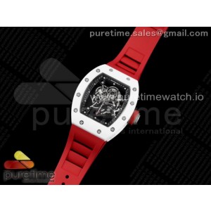 • KV공장 V3 리차드밀 RM055 화이트세라믹 스켈레톤다이얼 레드러버 _ RM055 White Ceramic KVF Best Edition Skeleton Dial Black on Red Rubber Strap MIYOTA8215 V3