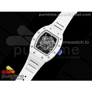 KV공장 V3 리차드밀 RM055 화이트세라믹 스켈레톤다이얼 블루용두 화이트러버 _ RM055 White Ceramic KVF Best Edition Skeleton Dial White Blue on White Rubber Strap MIYOTA8215 V3 > 리차드밀
