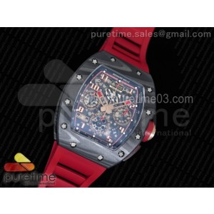 • KV공장 리차드밀 RM011 NTPT 로터스 F1 카본 크로노그래프 크리스탈 스켈레톤 다이얼 레드 러버 스트랩 RM011 RM011 NTPT Lotus F1 Team Carbon Case Chronograph KVF 1_1 Best Edition Crystal Skeleton Dial Red on Red Rubber Strap A