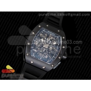 • KV공장 리차드밀 RM011 리얼 세라믹 크로노그래프 크리스탈 스켈레톤 다이얼 블랙 러버 스트랩 RM011 Real Ceramic Case Chronograph KVF 1_1 Best Edition Crystal Skeleton Dial Black on Black Rubber Strap A7750