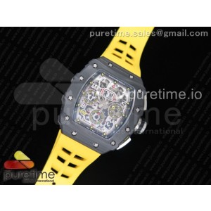 • KV공장 리차드밀 RM011 카본 케이스 크로노 RM011 Carbon Case Chrono KVF 1_1 Best Edition Crystal Skeleton Yellow Dial on Blue Racing Rubber Strap A7750