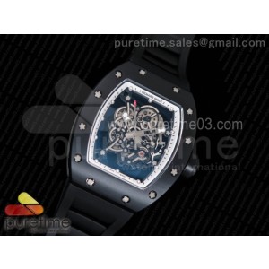 • KV공장 리차드밀 RM055 리얼 세라믹 스켈레톤 다이얼 화이트 베젤 블랙 러버 스트랩 RM055 Real Ceramic Case KVF Best Edition Skeleton Dial White Inner Bezel on Black Rubber Strap MIYOTA8215