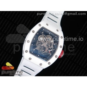 KV공장 리차드밀 RM055 리얼 올 화이트 세라믹 스켈레톤 다이얼 레드 화이트 러버 스트랩 RM055 Real All White Ceramic KVF Best Edition Skeleton Dial Red on White Rubber Strap MIYOTA8215 > 리차드밀
