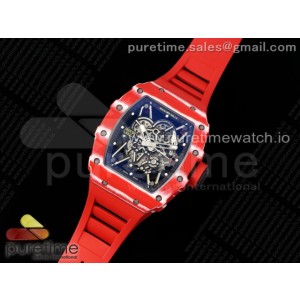 ZF공장 리차드 밀 레드카본 레스트랩 RM035-02 Red Carbon ZF 11 Best Edition Skeleton Dial on Red Rubber Strap NH05A V3+ > 리차드밀