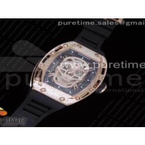 • 리차드밀 RM052 폴리쉬드 로즈골드 풀 파베 다이아몬드 스컬 다이얼 블랙 러버 스트랩 RM052 Polished RG Full Paved Diamonds Skull Dial on Black Rubber Strap MIYOTA8215
