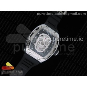 • 리차드밀 RM052 폴리쉬드 풀 파베 다이아몬드 스컬 다이얼 블랙 러버 스트랩 RM052 Polished SS Full Paved Diamonds Skull Dial on Black Rubber Strap MIYOTA8215