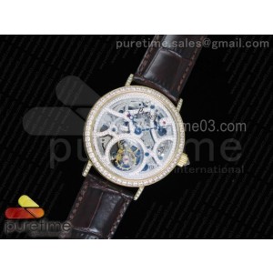 • 피아제 뚜르비롱 로즈골드 풀 파베 다이아몬드 스켈레톤 다이얼 브라운 레더 스트랩 Gouverneur Tourbillon RG Full Paved Diamonds Skeleton Dial on Brown Leather Strap