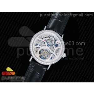 • 피아제 뚜르비옹 풀 파베 다이아몬드 스켈레톤 다이얼 블랙 레더 스트랩 Gouverneur Tourbillon SS Full Paved Diamonds Skeleton Dial on Black Leather Strap
