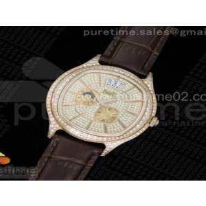 • 피아제 엠페라도르 로즈골드 풀 파베 다이아몬드 브라운 레더 스트랩 Emperador RG Full Paved Diamonds on Brown Leather Strap A23J