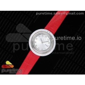 • 피아제 포제션 화이트 다이얼 다이아몬드 베젤 레드 레더 스트랩 Possession Watch SS White Dial Diamonds Bezel on Red Leather Strap Jap Quartz Movement