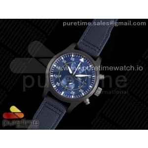 • ZF공장 IWC 파일럿 크로노 세라믹 블루다이얼 가죽 _ Pilot Chrono Blue Angels Black Ceramic ZF Best Edition on Blue Leather Strap A7750