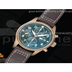 • ZF공장 IWC 파일럿 크로노그래프 스핏파이어 브론즈케이스 그린다이얼 가죽 _ Pilot Chrono Spitfire IW387902 Bronze ZF 11 Best Edition Green Dial on Brown Leather Strap A7750