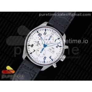 • ZF공장 V2 IWC 파일럿 크로노 377725 가죽 Pilot Chrono 377725 _150 Years_ ZF 1_1 Best Edition White Dial on Black Leather Strap A7750