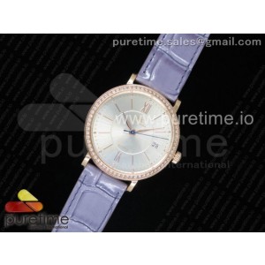 • MK공장 IWC 포르토피노 골드 가죽 Portofino Automatic 37 RG MK 1_1 Best Edition Silver Dial Diamonds Bezel on Light Pueple Leather Strap MIYOTA 9015