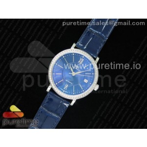 • MK공장 IWC 포르토피노 골드 가죽 Portofino Automatic 37 SS MK 1_1 Best Edition Blue Dial Diamonds Bezel on Blue Leather Strap MIYOTA 9015
