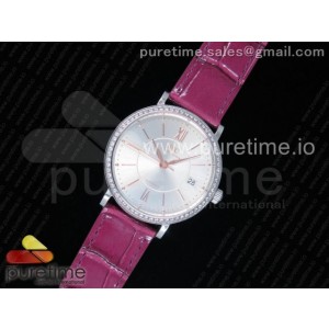 • MK공장 IWC 포르토피노 골드 가죽 Portofino Automatic 37 SS MK 1_1 Best Edition Silver Dial Diamonds Bezel on Pueple Leather Strap MIYOTA 9015