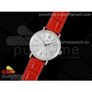 • V7공장 IWC 포르토피노 실버다이얼 다이아베젤 레드가죽 _ Portofino 37mm SS V7F 11 Best Edition White Dial Diamonds Bezel on Red Leather Strap A2892